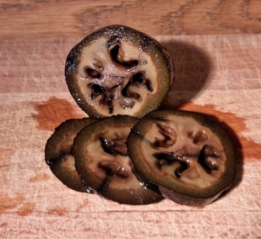 Schwarze Nüsse*, oft als kulinarisches Geheimnis bezeichnet, sind grün geerntete Baumnüsse, die in einer speziellen Mischung aus Gewürzen und Zucker eingelegt sind.